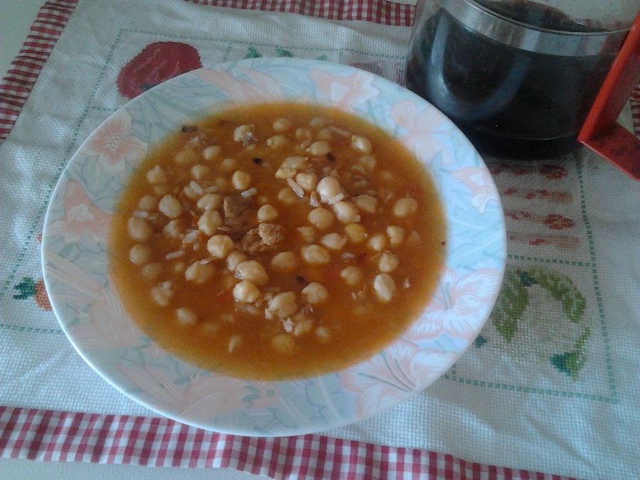Los garbanzos los pusimos la noche anterior a mojo en agua caliente y un puñado de sal gorda.
