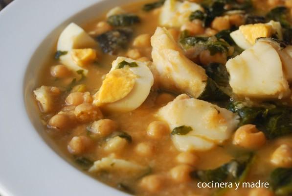 Garbanzos con bacalao y espinacas