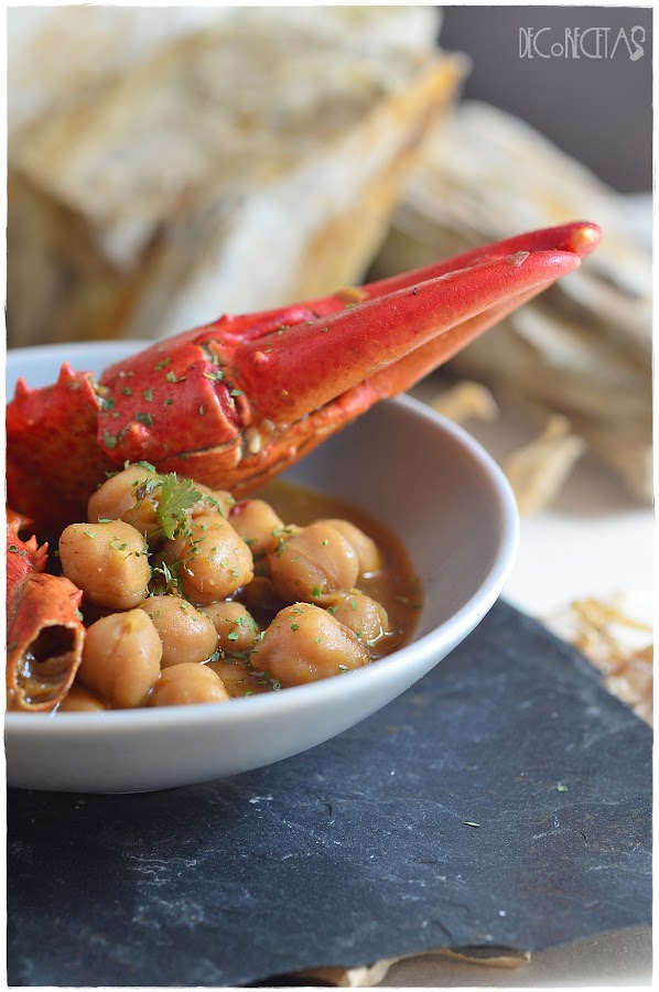 Me animé a realizarlo con garbanzos que sabéis que es una de mis legumbres favoritas y es una manera idónea de juntar el mar con la tierra para ello utilice un caldo de Aneto