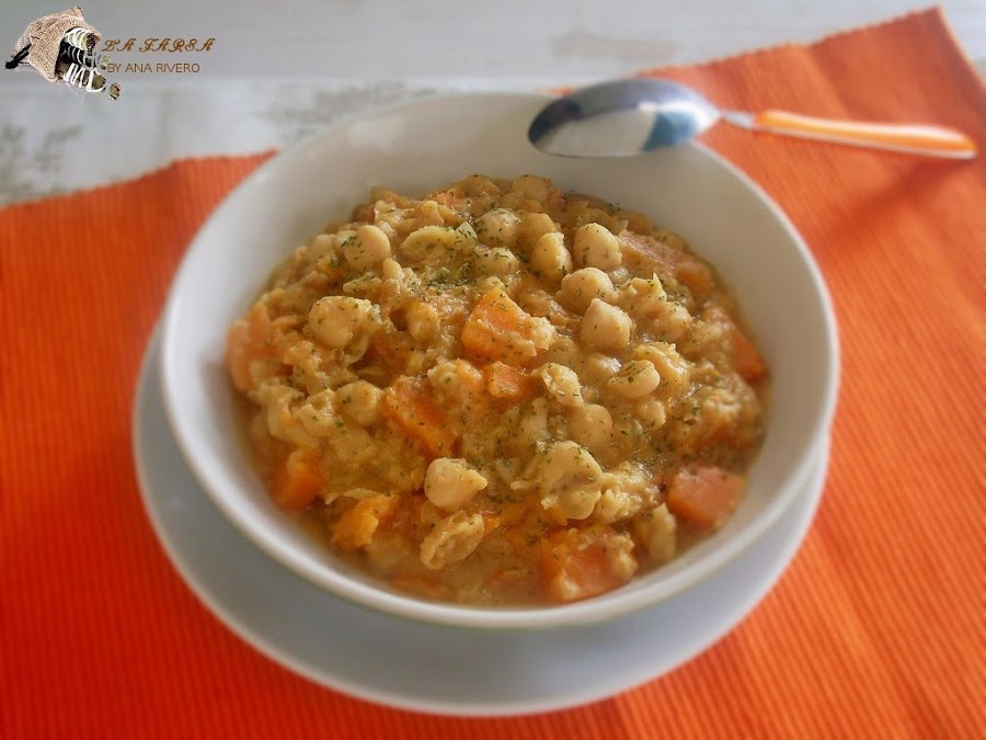 Cuando los garbanzos estén tiernos, agregar el sofrito de verdura