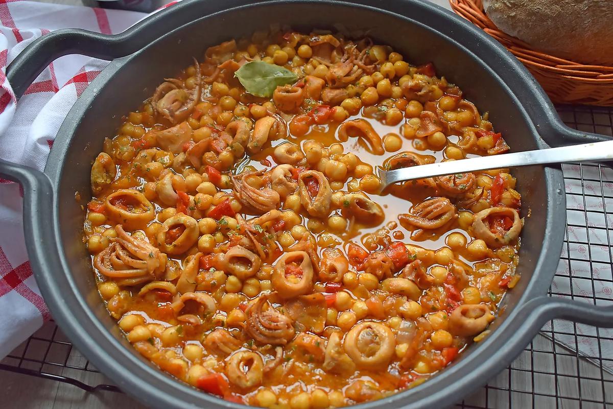 Receta de garbanzos con calamares: como se hacen paso a paso