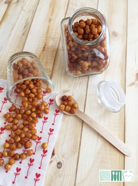 Mezclar en un cuenco las especias con el aceite. Pasar los garbanzos por la mezcla y dejarlos enfriar. Conservarlos en un lugar seco y hermético.