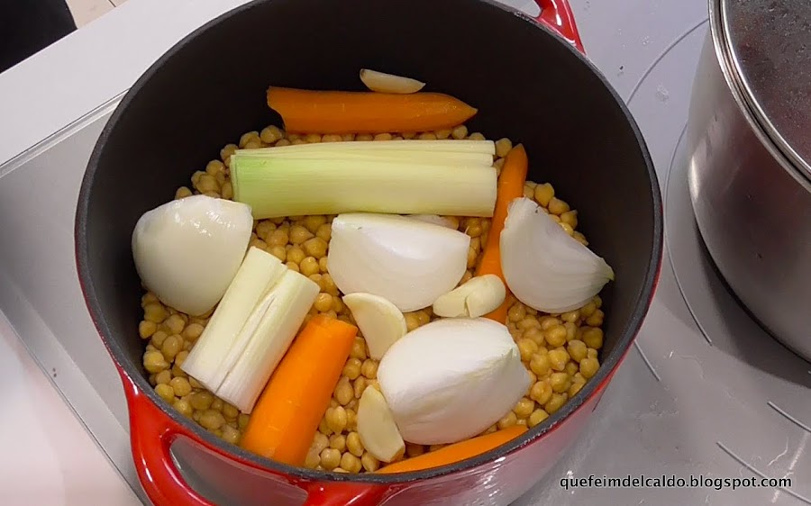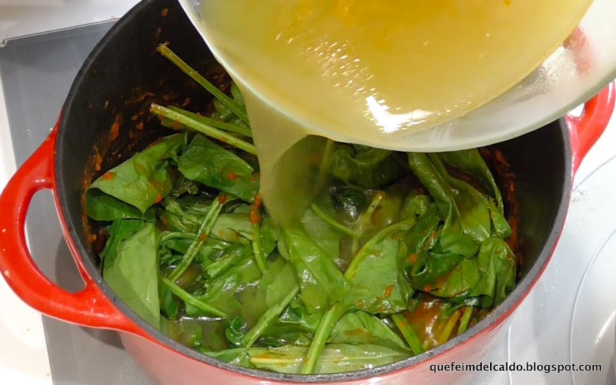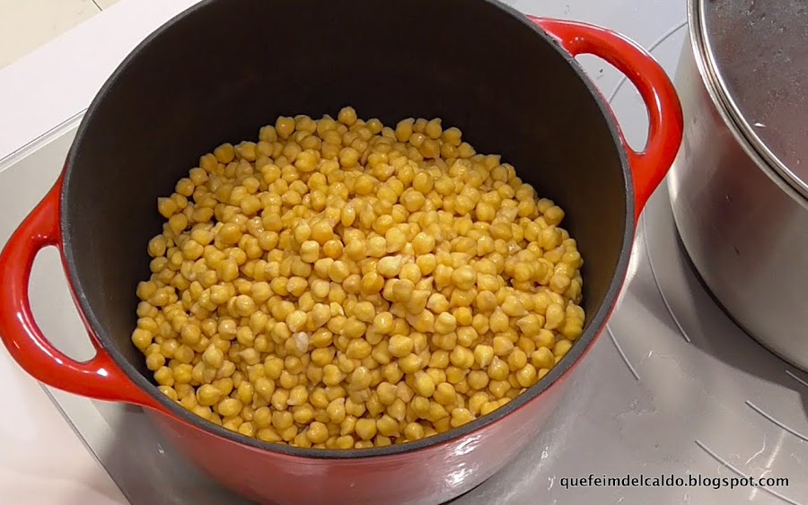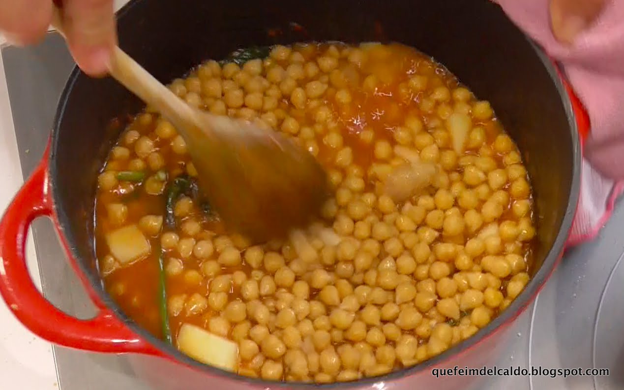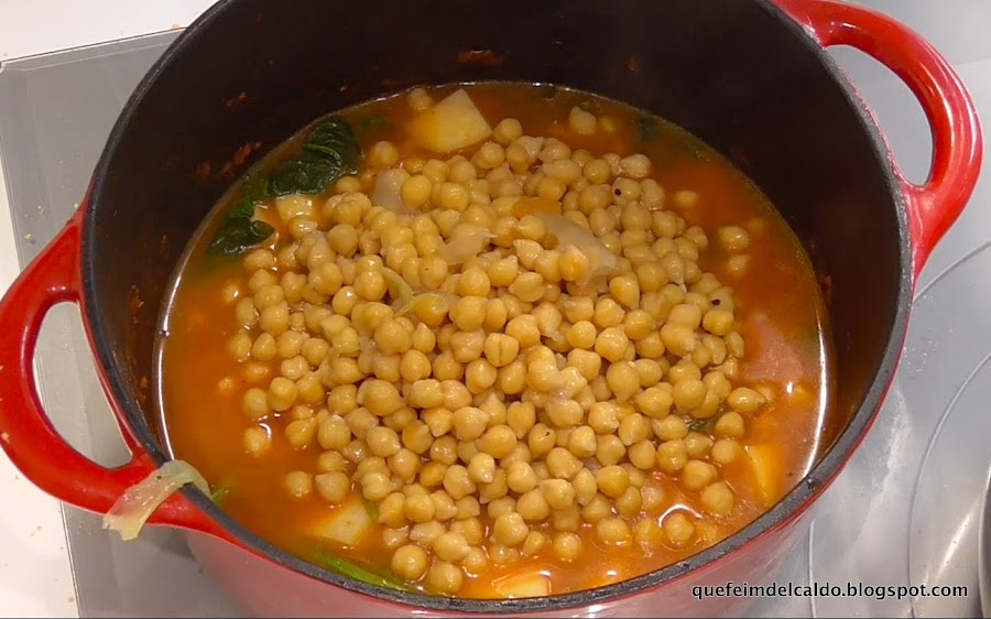 Le añadimos alrededor de medio litro de caldo de cocción de hacer los garbanzos.