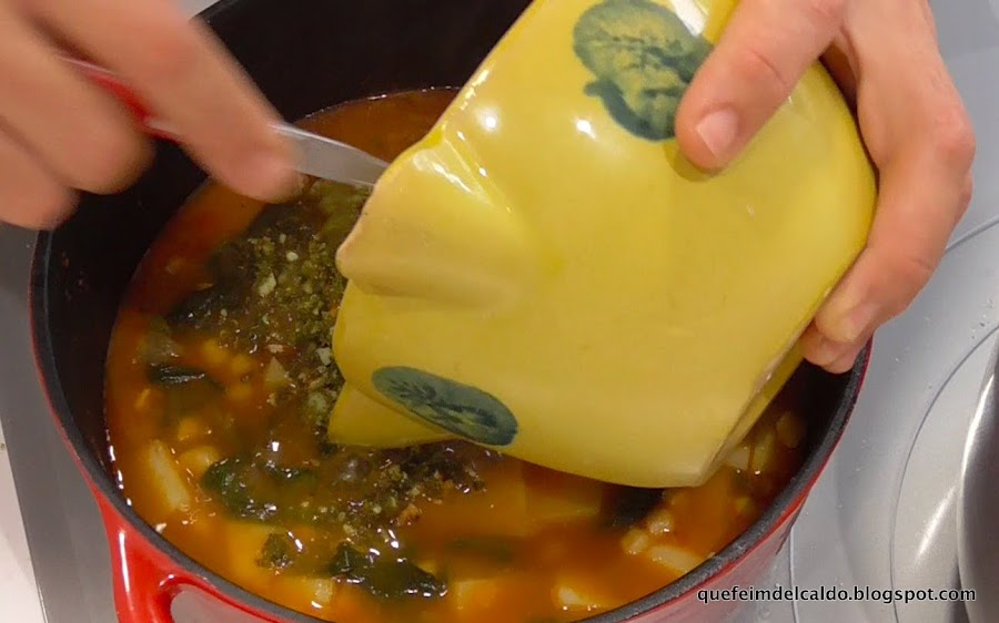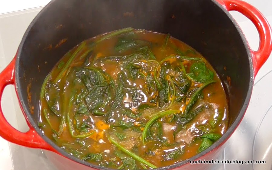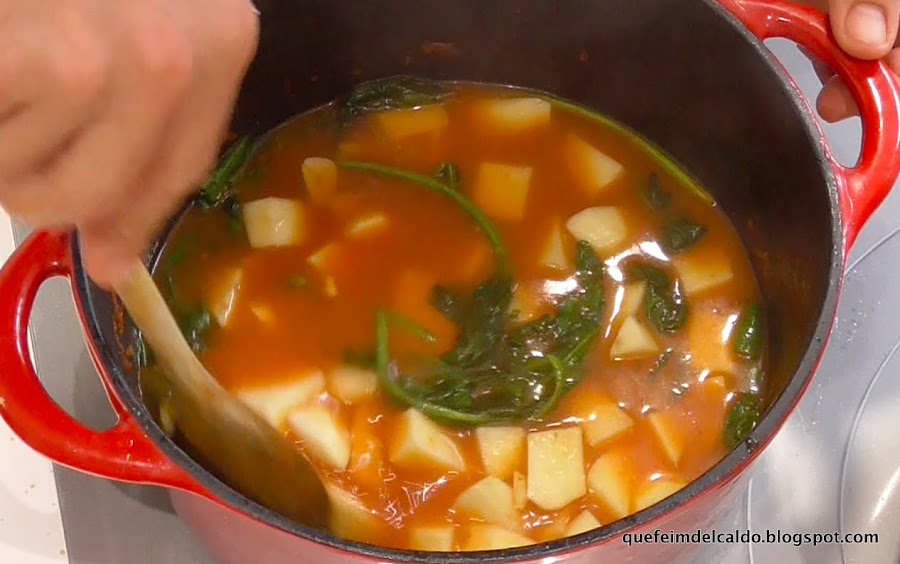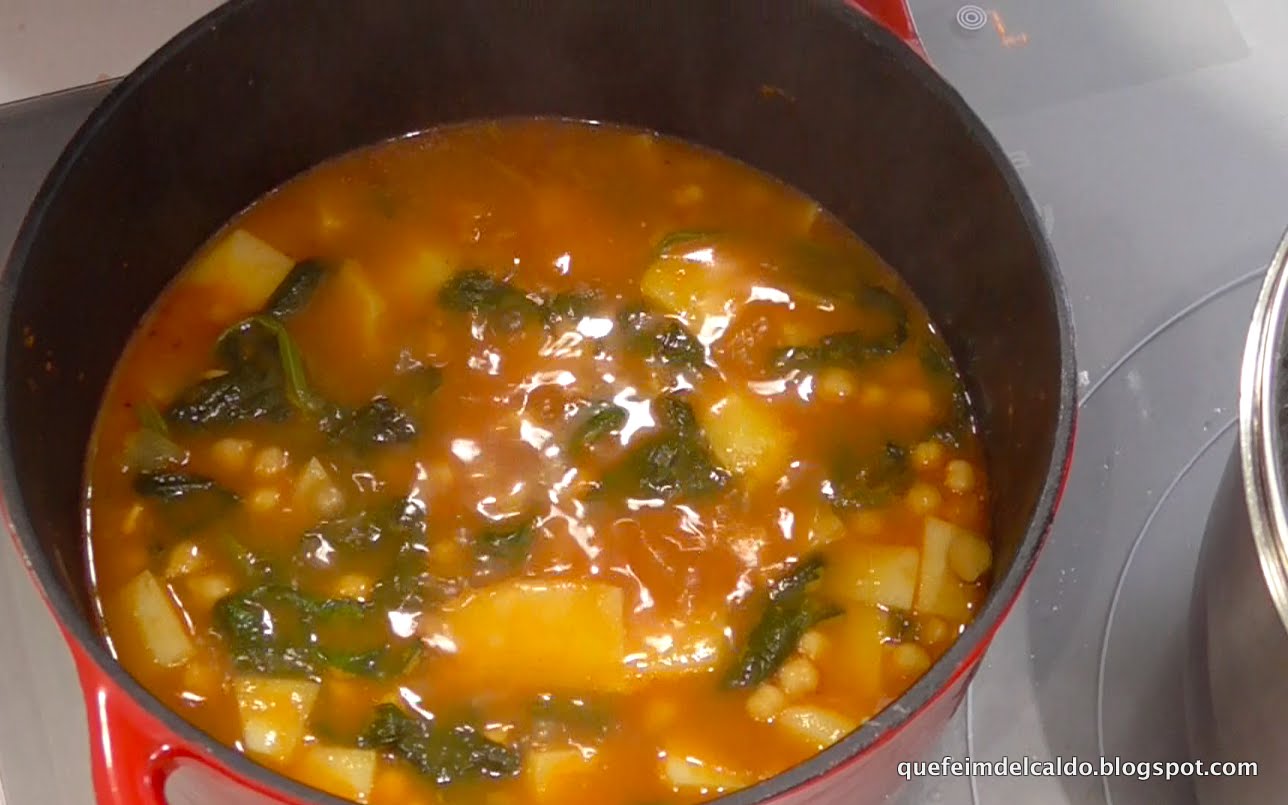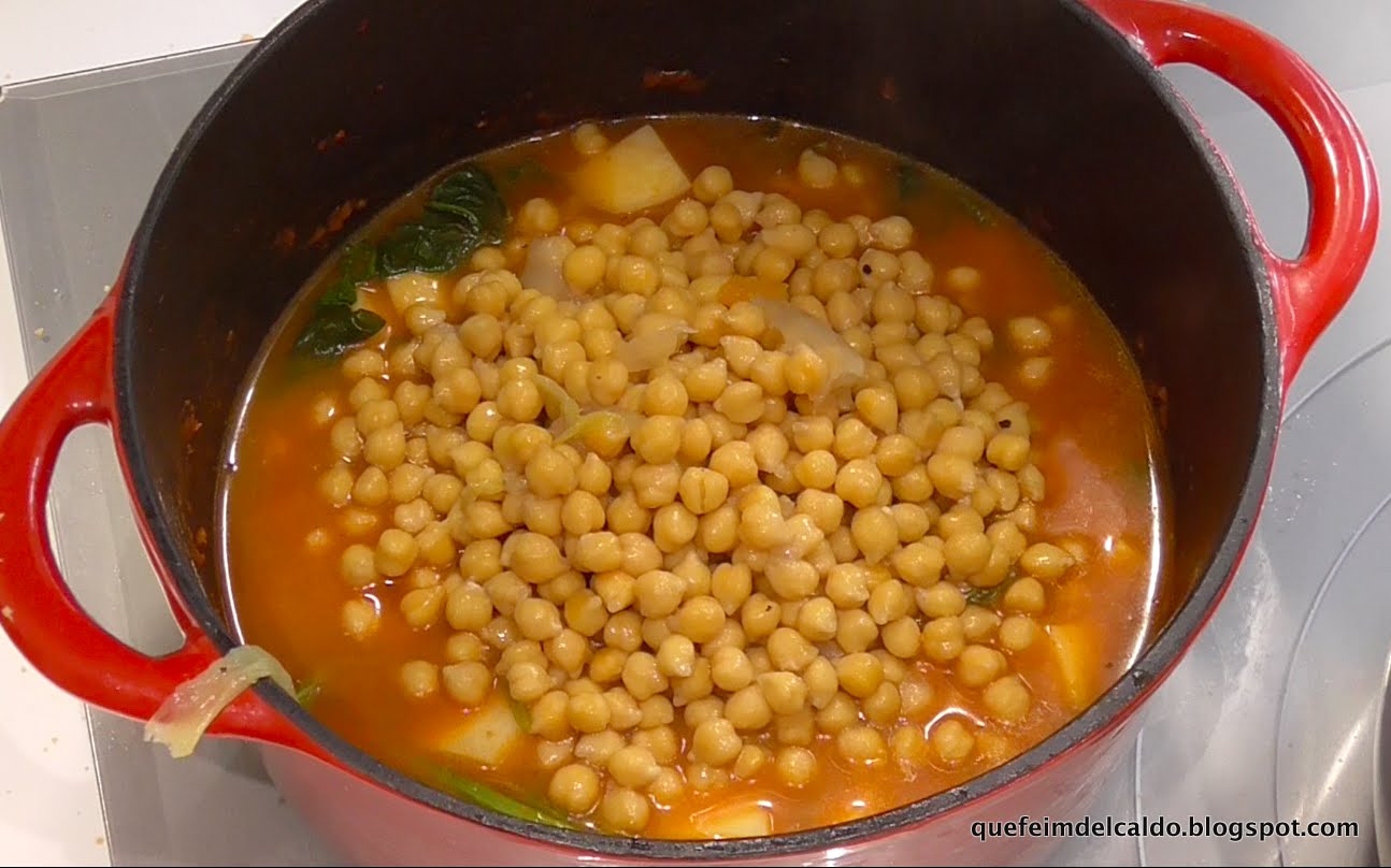 Le añadimos alrededor de medio litro de caldo de cocción de hacer los garbanzos.