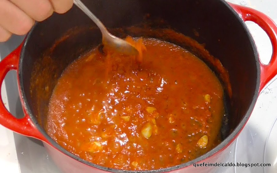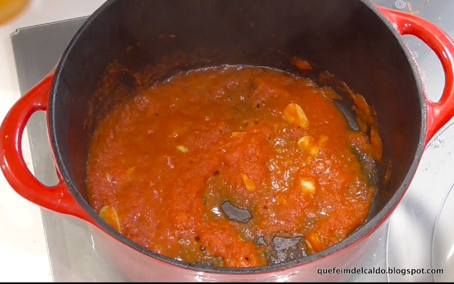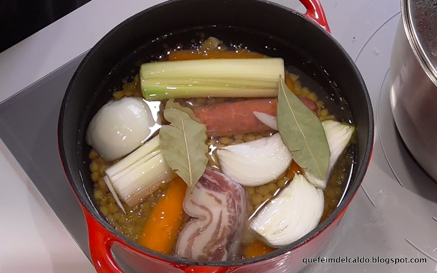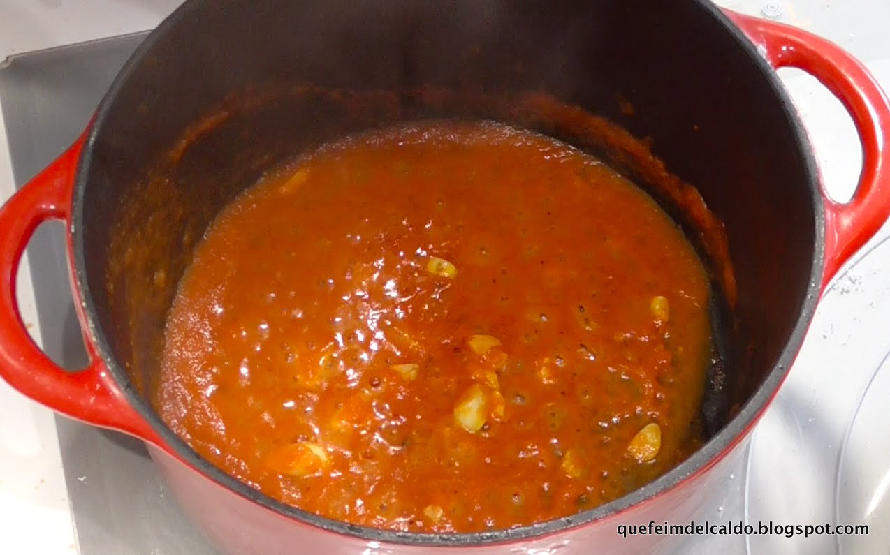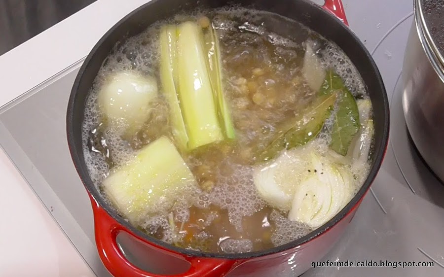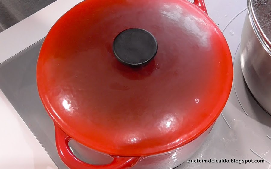 Una vez conseguido el hervor, desespumamos, bajamos la potencia del fuego a 4-9 y lo dejamos cociendose durante 2,5 horas.