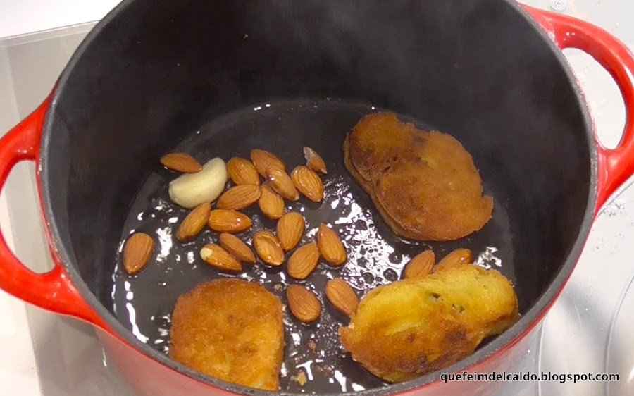 Incorporamos para freír un diente de ajo y 10 almendras crudas.