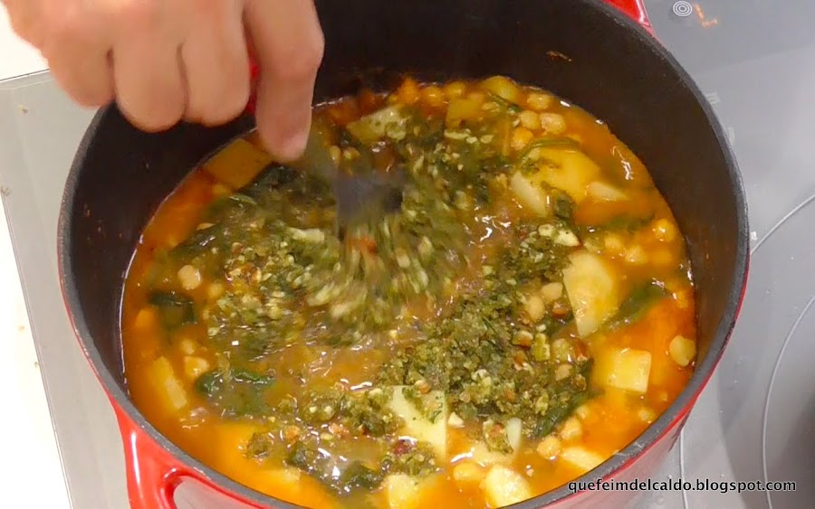 Incorporamos la picada al potaje y lo dejamos cocinándose 10 minutos más.