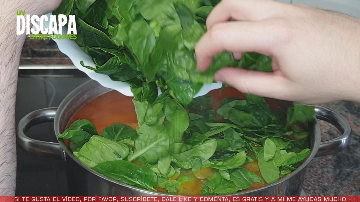 4Ahora a falta de 5 minutos de la cocción de los garbanzos, añadimos las espinacas.