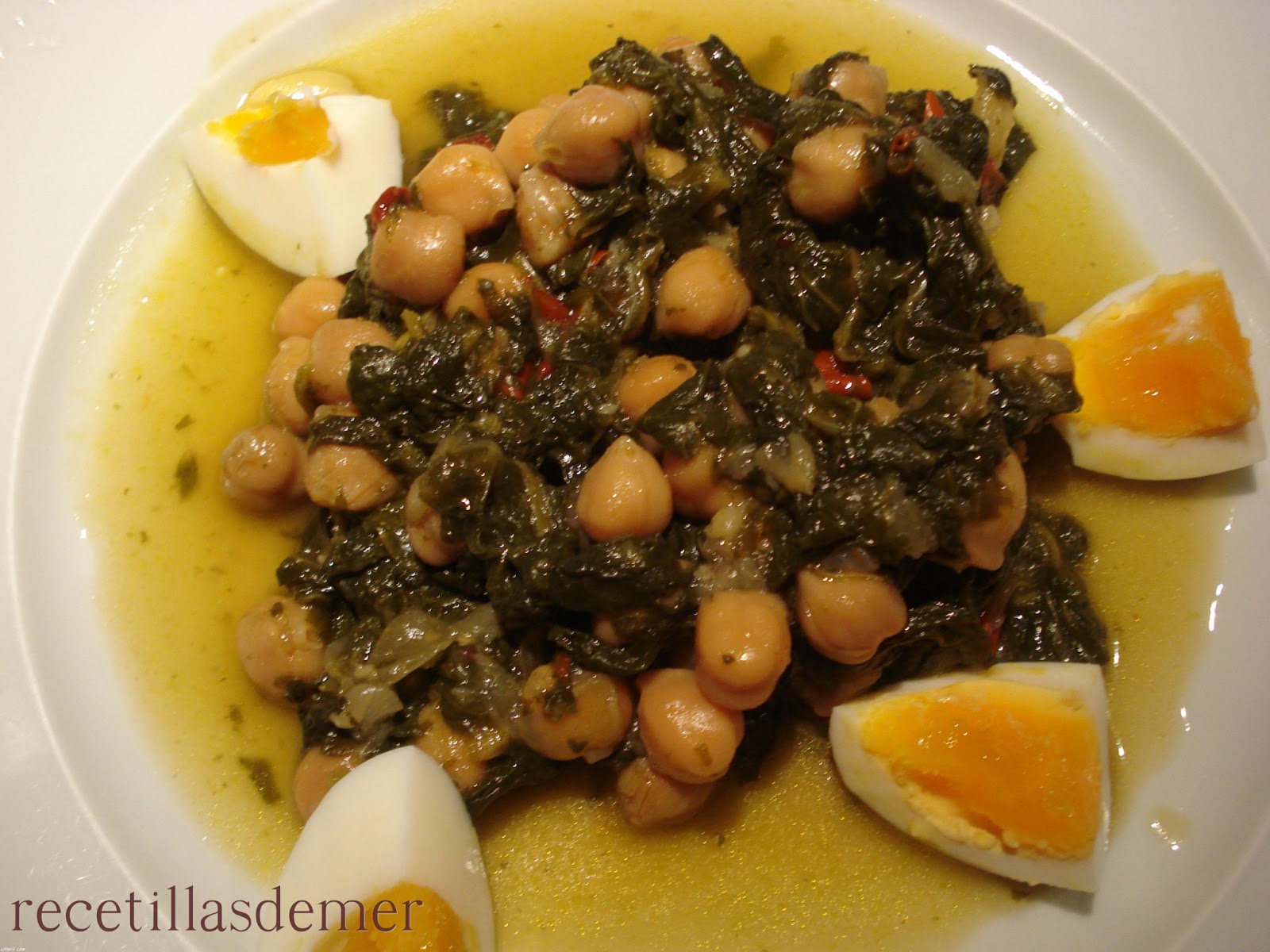 Empezamos con el sofrito picando la cebolla muy fina y la pochamos en una sartén con aceite de oliva. Picamos los dos dientes de ajo muy finos y los añadimos a la cebolla cuando esta este ya transparente. Añadimos también la hoja de laurel. Hacemos lo mismo con el pimiento choricero, picandolo muy fino y agregandolo a la sartén. Freir todo junto y cuando este listo agregar las espinacas escurridas y los garbanzos.