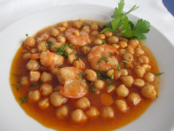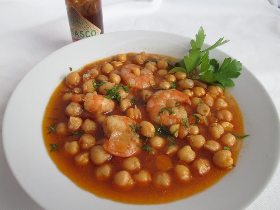 Ponemos un poco de aceite de oliva a calentar y cuando esté en su punto sofreímos las verduras bien picaditas hasta que estén doraditas, añadimos el pimentón, con mucho cuidado de que no se pegue (para que no amargue).Ponemos el laurel y los garbanzos y añadimos el caldo de cocción de los langostinos y si es necesario un poco más de agua, salamos ligeramente y añadimos la cucharadita de Tabasco® Chipotle. Dejamos cocer todo junto hasta que los garbanzos estén bien tiernos , el caldo reducido y bien especito, en los últimos minutos de cocción añadimos los langostinos pelados y terminamos de cocer. Servimos con un poco de perejil por encima.