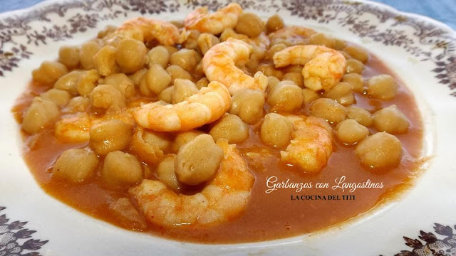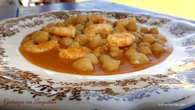 Hoy es turno para un guiso muy tipico de por aqui abajo y le vamos a dar la titularidad a mi querida mujer que es la que nos va dar esta receta que hoy traigo por el blog y de cara al fin de semana puede venir ideal estos "Garbanzos con Langostinos" que los realiza de maravillas.