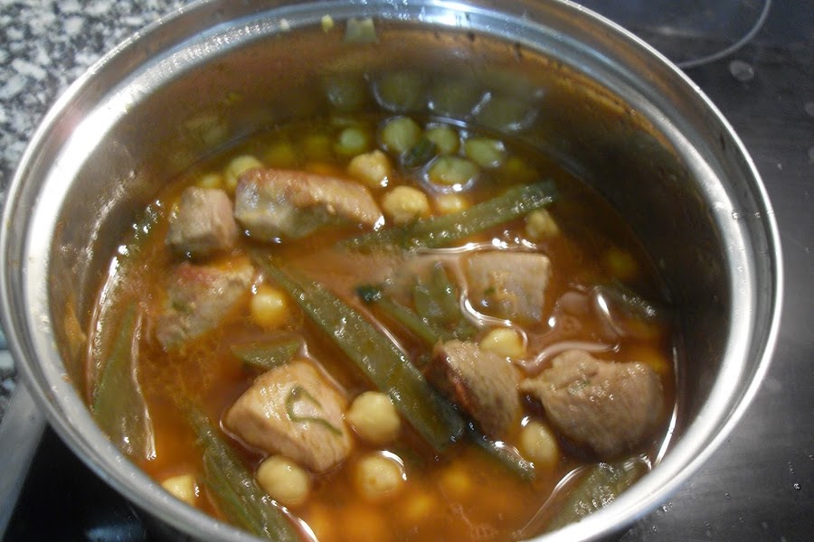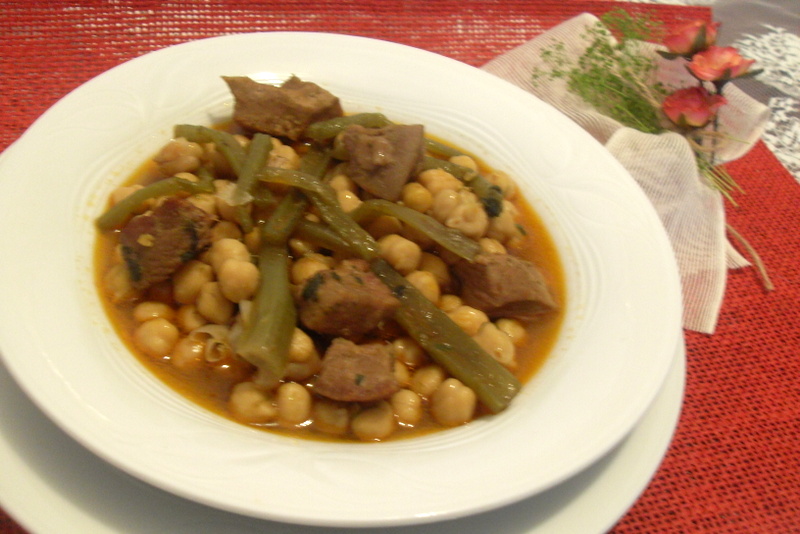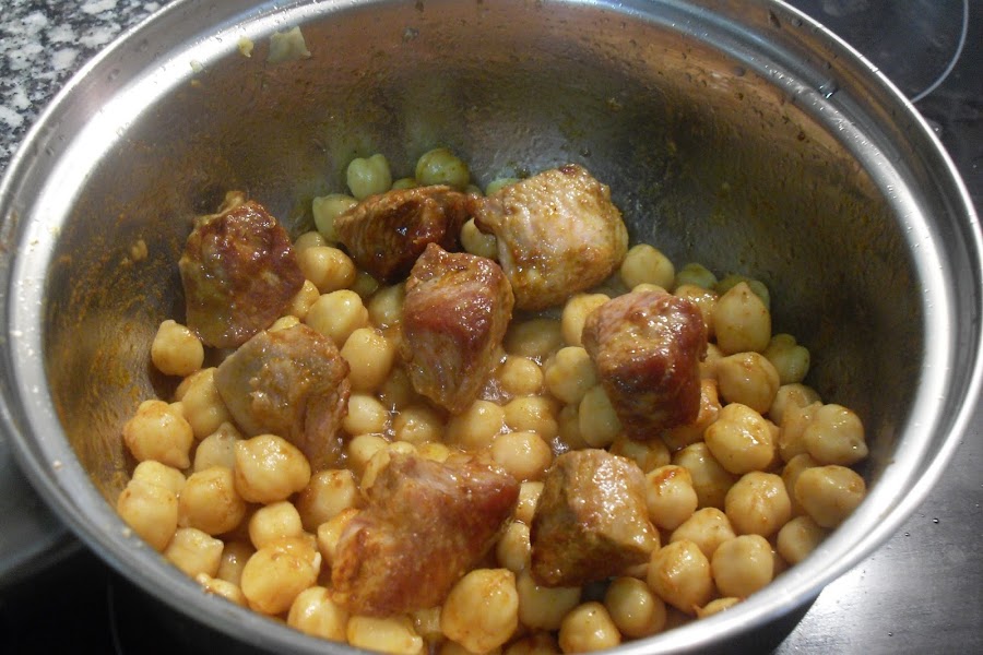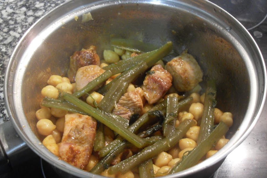 A continuación incorporar los garbanzos cocidos, remover y dejar cocer otros 10 minutos más.