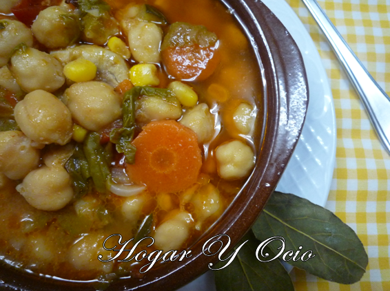 6. Cuando los garbanzos estén en el punto deseado retiramos del fuego y dejamos que el potaje repose un poco antes de servirlo. Si queremos que el potaje esté más espeso podemos pasar por la batidora algunos garbanzos con un poco de caldo y agregarlos así.