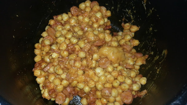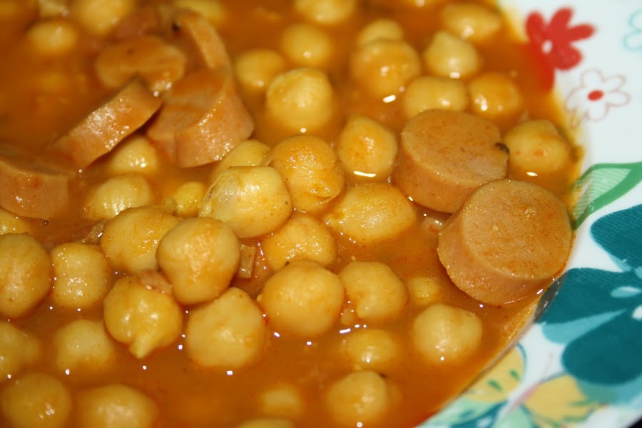 RECETA DE GARBANZOS CON SALCHICHAS Y JAMÓN