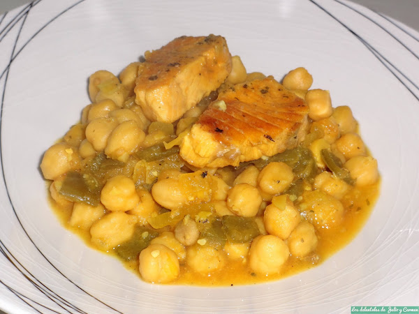 No podemos decir que sea un plato de garbanzos como los de toda la vida, ya que hacemos "trampas" y ya usamos una lata de garbanzos cocidos, ahorrándonos mucho tiempo, que también es importante en la cocina. Pero por el resto, si podríamos decir que es un plato de legumbres clásico, pero con la originalidad de prepararlo con un pescado, en este caso salmón, que realmente sorprende a quien lo prueba. Y prueba de ello es que la primera vez que lo preparamos, fue ni mas ni menos que en una visita de mi madre a casa, por lo que os podéis imaginar que su opinión es bastante fiable, ya que lleva toda la vida preparando este tipo de platos, llegando a se una experta, como lo son todas las madres. ¿Cual fue su veredicto? La encantó. Puede sonar a que lo dijo por que lo hicimos nosotros, pero la mejor prueba es que nos pidió la receta y sabemos que lo ha preparado ya varias veces en su casa.