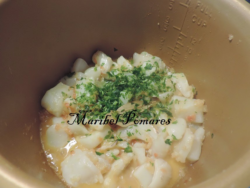 La sepia cortada en trozos.