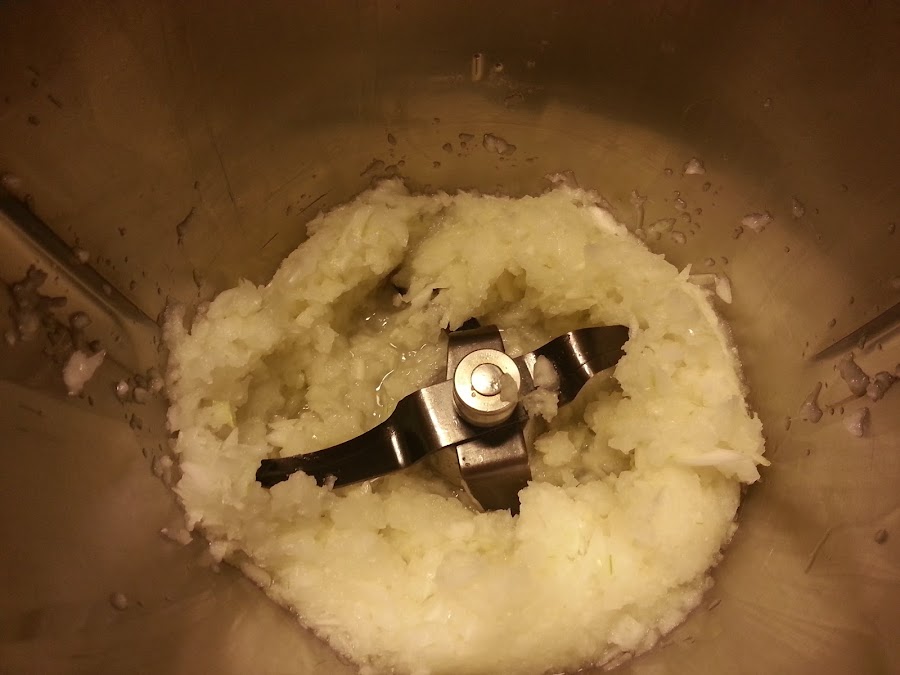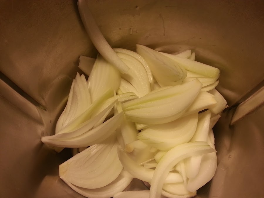 Ponemos la cebolla y el ajo en el vaso del thermomix.