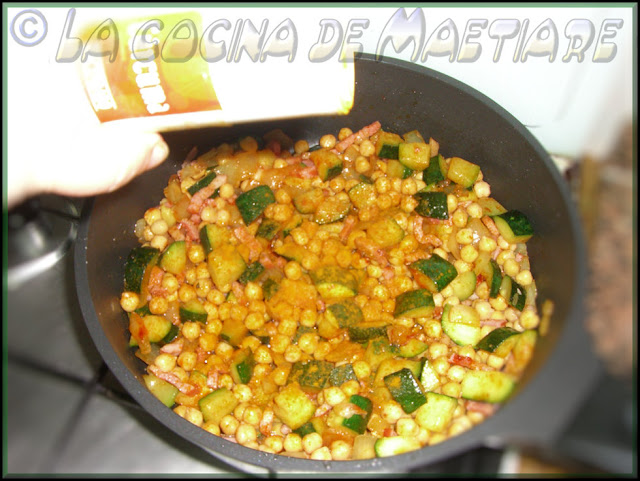 Mezclar bien todo para que los garbanzos se impregnen bien de los sabores, retocar de sal si fuese necesario y cocinar 2 minutos más.