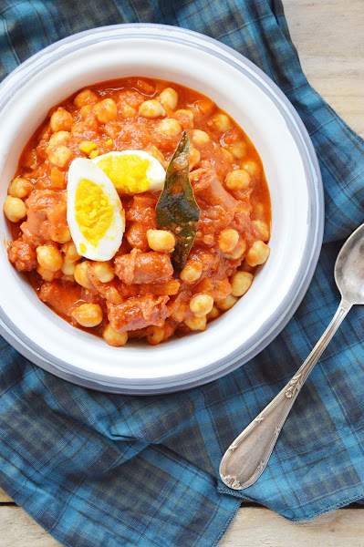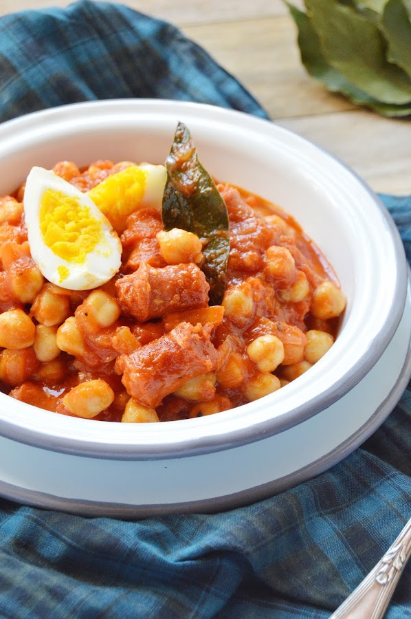 Después de hacer la tosta que os enseñé el lunes, me quedaron sobras de garbanzos cocidos y tomates en lata. Con ellos hice este sencillísimo, pero muy sabroso guiso que está para no parar de mojar en la salsita. Ahora que llegó el fresco otoñal, seguro que os apetece meter la cuchara!!!