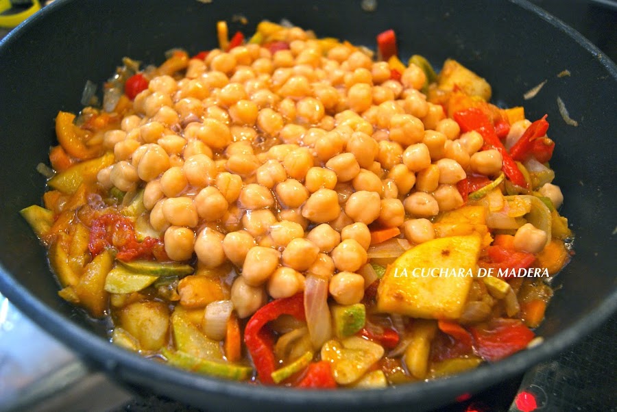 Añadimos los garbanzos, removemos.