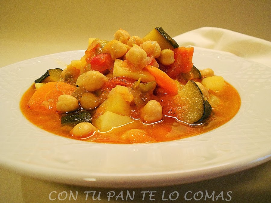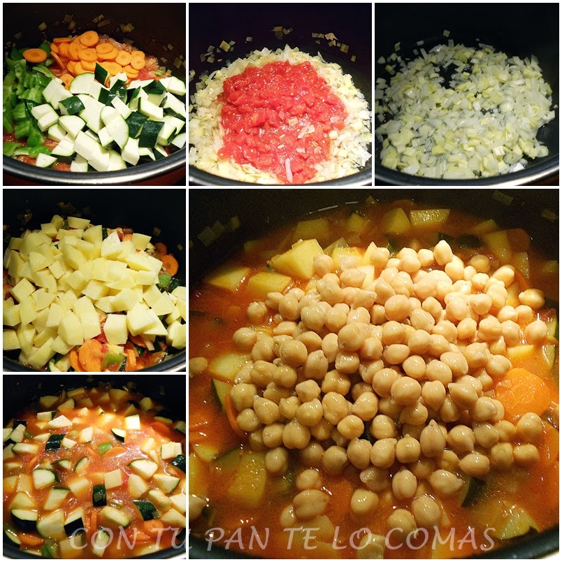 Estos son los garbanzos que hice el otro día, aunque la verdad es que yo echaba en falta un choricito y un poco de jamón... así que si no sois vegetarianos se lo añadís junto con la cebolla al principio.