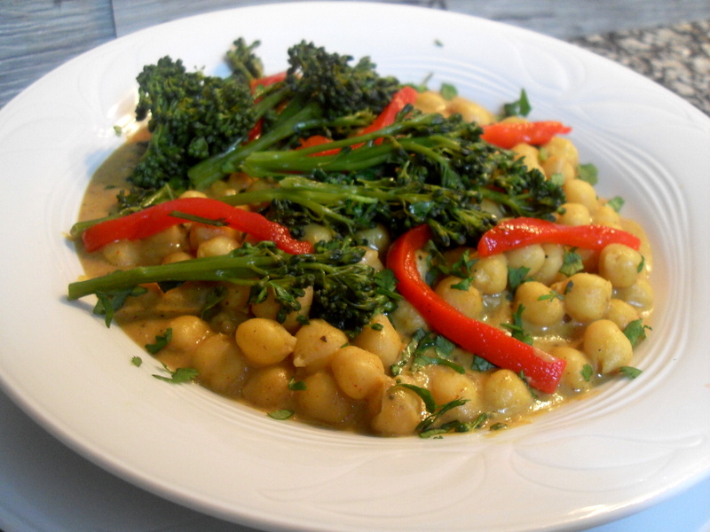 Al emplatar, poner las tiras de pimiento asado, por encima de los garbanzos y espolvorear con cilantro fresco picado.