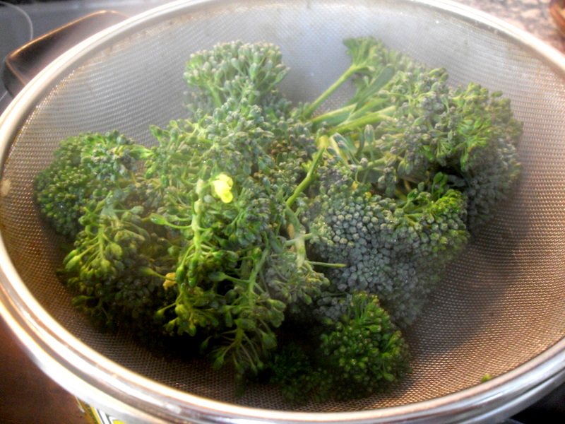 Elaboración:Lavar, trocear y escurrir el Bimi, (reserva los tallos para otra receta) y poner a cocer al vapor sobre un escurridor, durante 5 o 6 minutos.