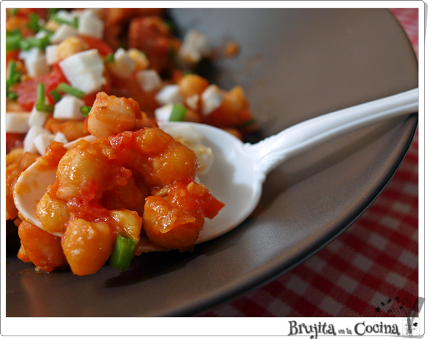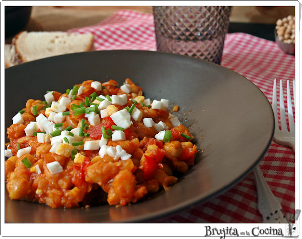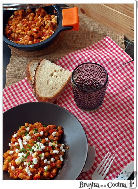 Este plato que hoy os propongo es fácil (puedes usar garbanzos de sobra de cocido, o de bote) y un rico sofrito y listo para comer. Eso sí a tope de energía para afrontar este lunes gris.
