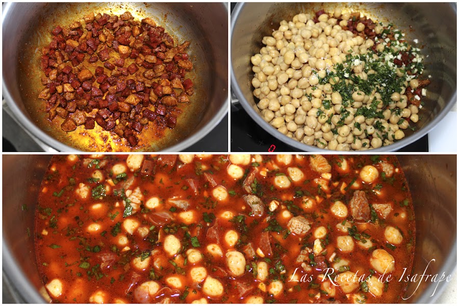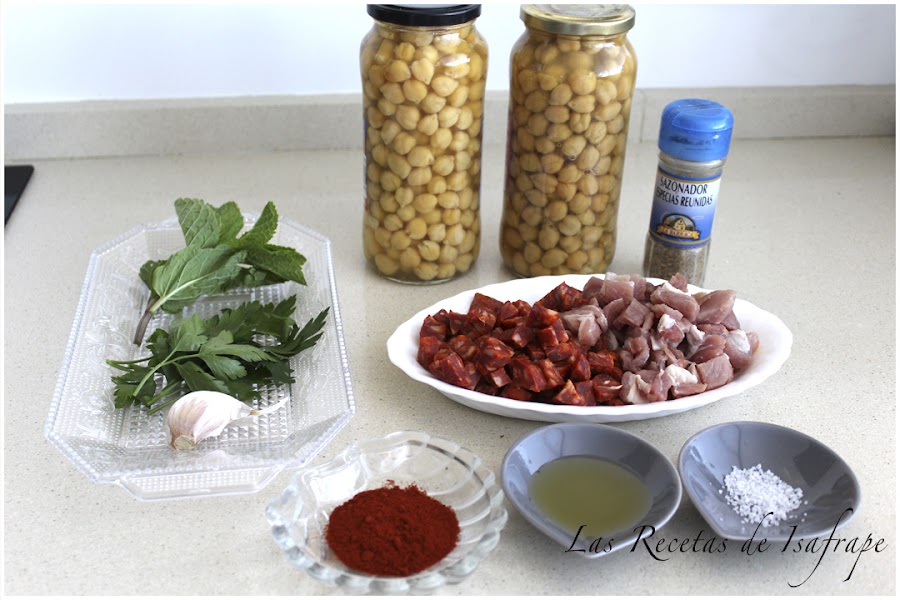 Garbanzos rápidos con carne y chorizo, ingredientes para 4 personas: