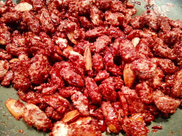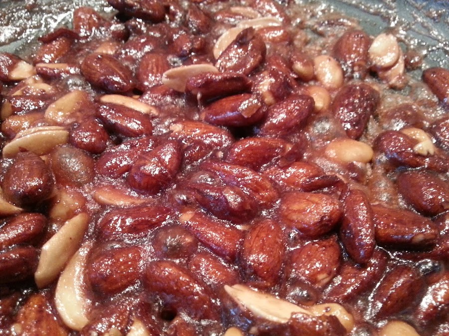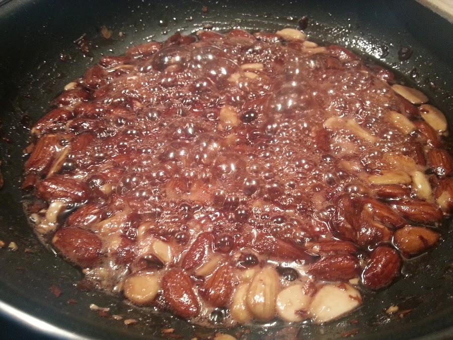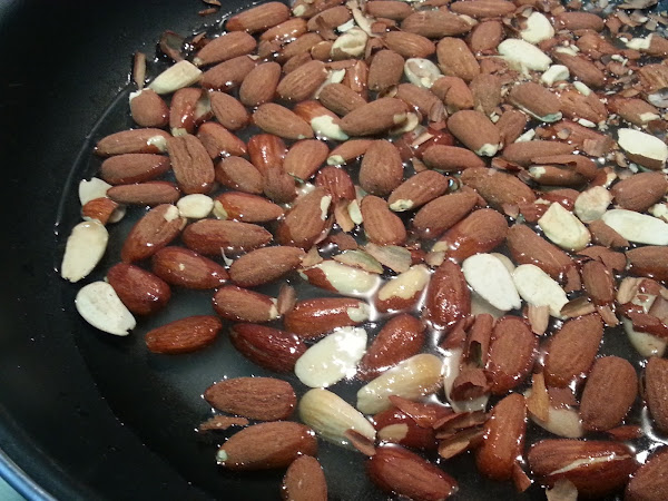 Es importante que las almendra sean con piel, y sin tostar, para que cojan ese color rojo característico de las garrapiñadas, además, de este modo el azúcar se fija mejor a la almendra.