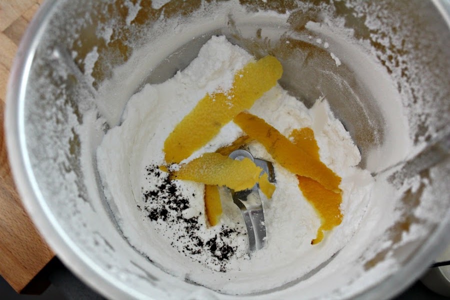 Añadimos las pieles de limón y un poquito de vainilla en polvo. Programamos de nuevo:30 seg. / vel. progresiva 5-10