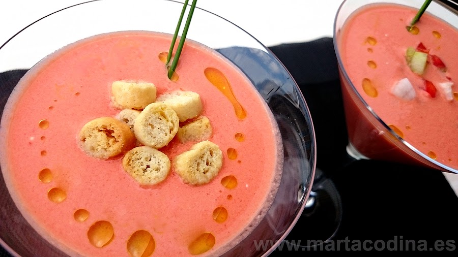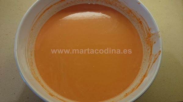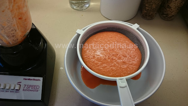 Este paso es opcional, El Gazpacho adquirirá una tonalidad rosada muy bonita.