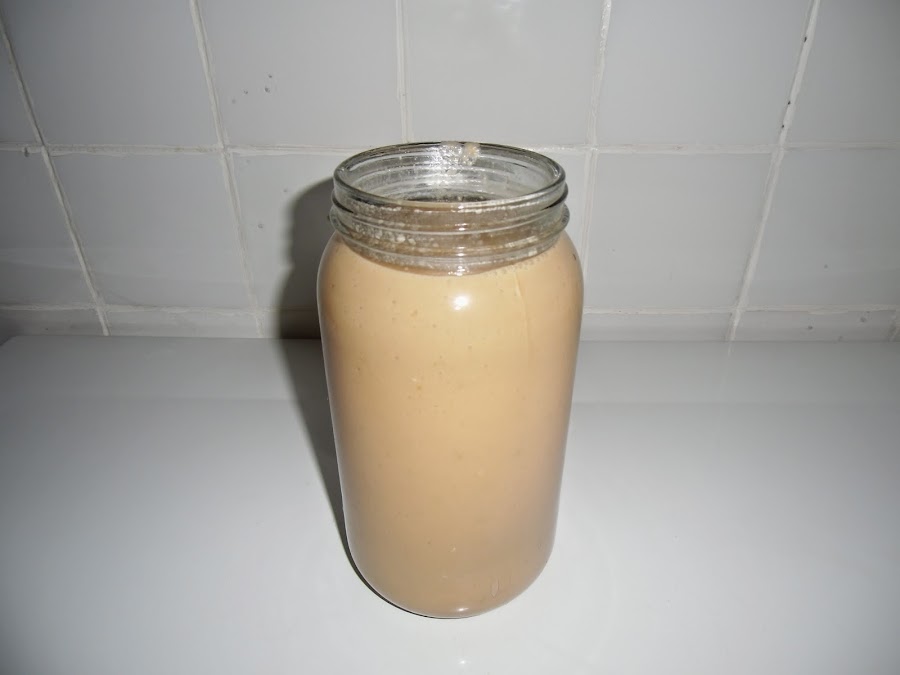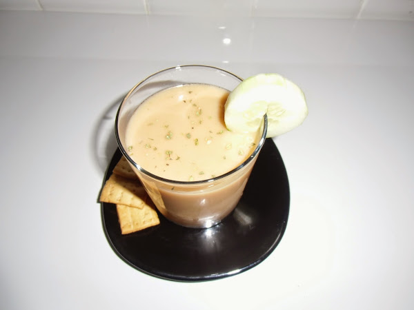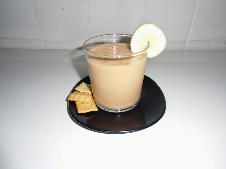 Lo cambiamos a un recipiente mas grande y le añadimos medio litro de agua muy fría, mezclamos bien, corregimos de sal y vinagre, y listo.
