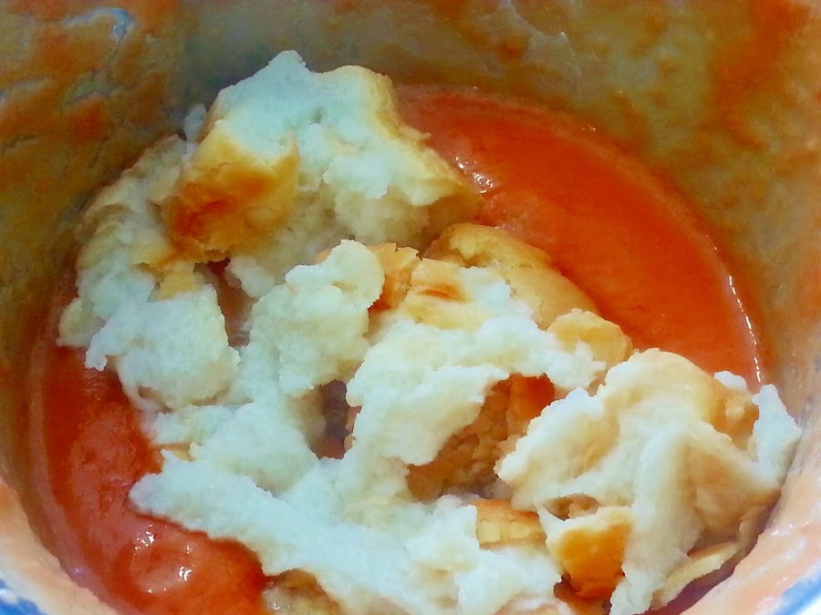 4. - Añadimos el pan escurrido y volvemos a triturar hasta que quede fino.