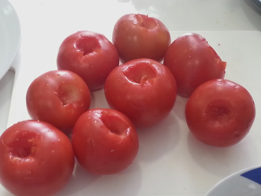 1. - Enjuagamos bien los tomates y le quitamos los pedúnculos. (la parte dura donde salen las hojas)
