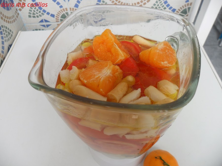 ELABORACIÓN DEL GAZPACHO CON MANDARINA Y GRISINES: