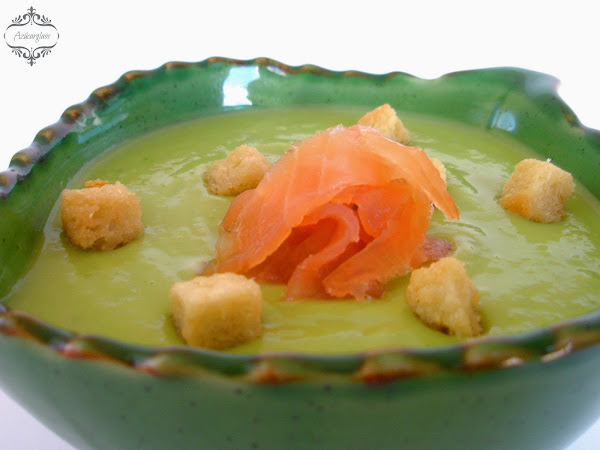 5. Servir con la guarnición que más os guste, en nuestro caso le pusimos tiras de salmón ahumado y picatostes de pan frito.