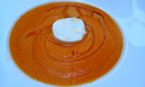 Presenta en platos individuales o cuencos, con una rodaja de queso de cabra y un chorrito de aceite de oliva por encima.