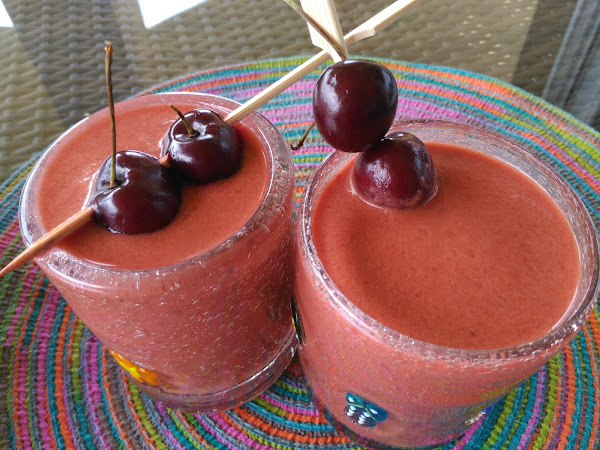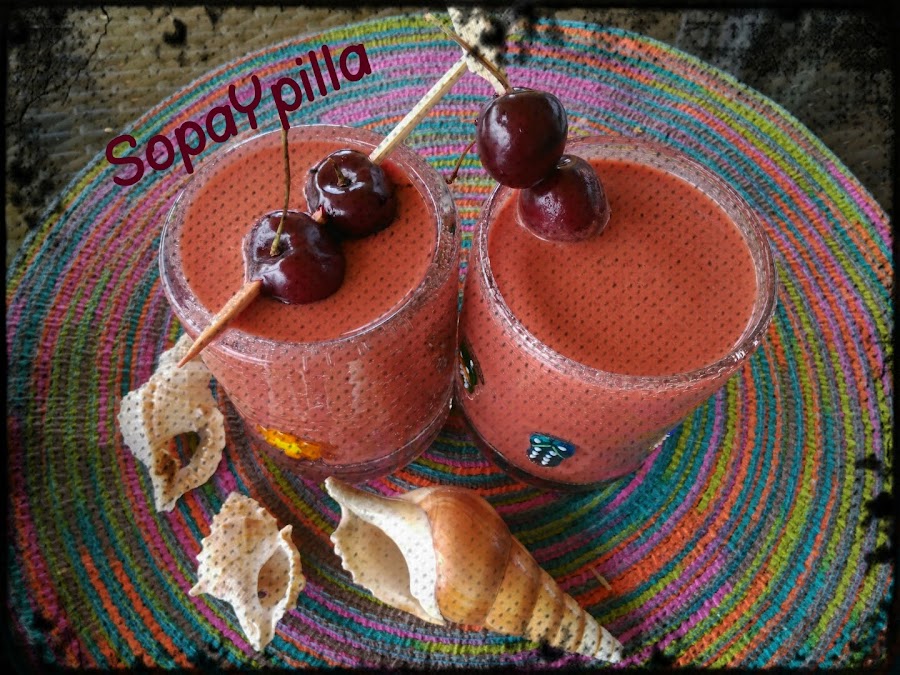 Me gustan todos los gazpachos habidos y por haber, y voy haciendo pruebas con ésto y lo otro durante el verano..este vez le tocó a unas cerezas que tenía y no sabía como gastar...eso sí!! tiene que estar fresquísimo, para que esté bien bueno...una delicia que va a sorprender a todo el mundo!