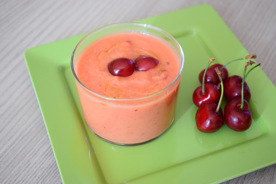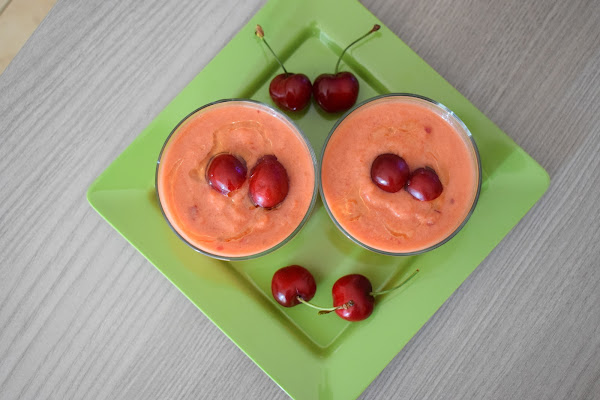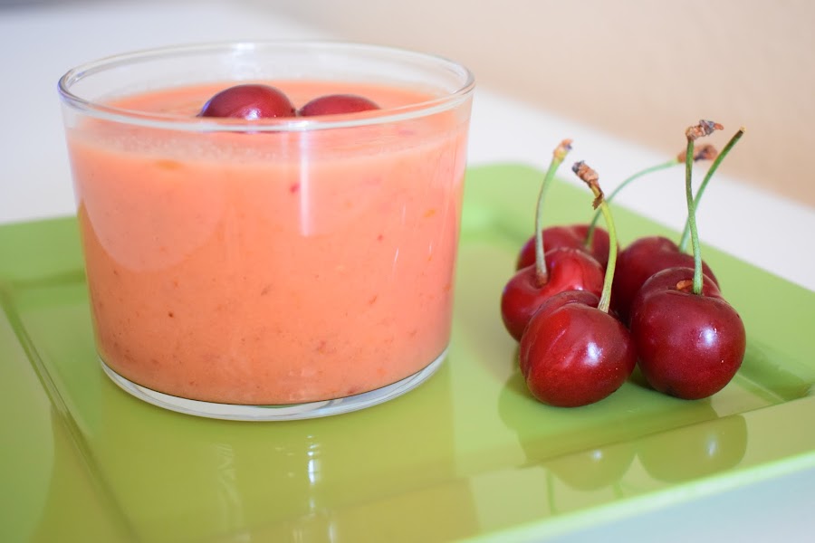 En verano no puede faltar un buen gazpacho(ver receta) y como el Reto de Facilísimode este mes trata de las cerezas, me parecía interesante compartir con vosotros esta versión de Gazpacho de Cereza, que está riquísimo.