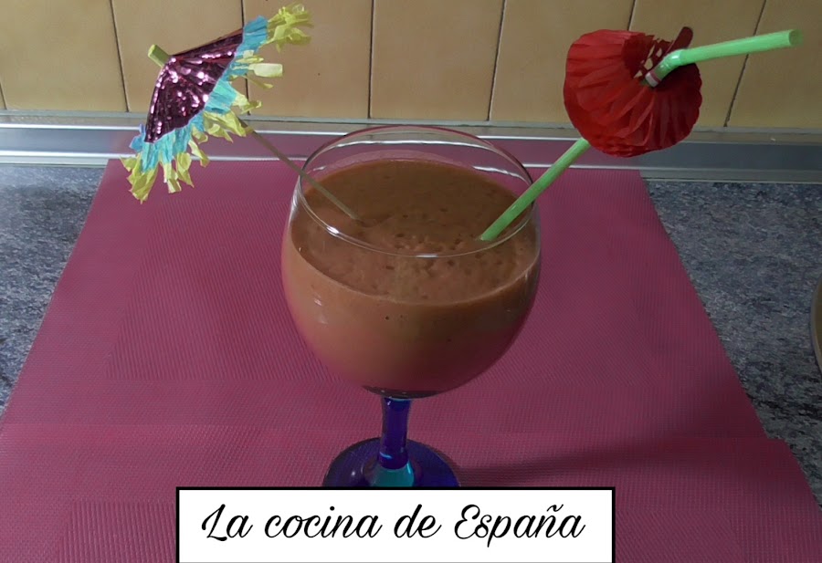 Lo primero que tenemos que hacer es en una batidora se echa el tomate, las cerezas sin el hueso, la sandía sin las pepitas, la pimienta al gusto, el vinagre igual al gusto, el pimiento verde italiano, el aceite de oliva extra, el pepino, la cebolla y la sal, se tapa la batidora y se pone a batir, cuando ya se ha batido bien la mezcla y esta cremosa lo que hacemos es parar la batidora, lo echamos en un bol y a la nevera para que esté bien frío para tomar.