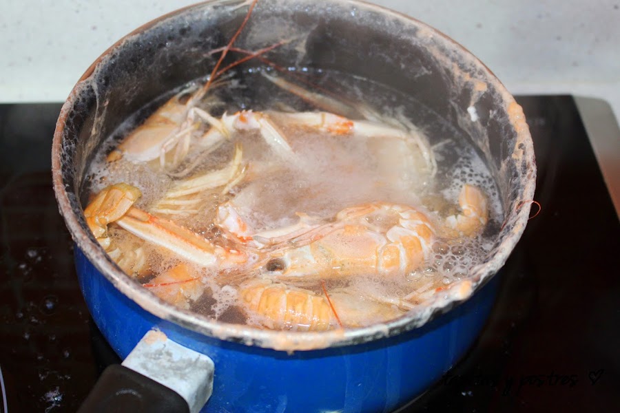 Yo he cocido unas cigalas en abundante agua con sal unos tres minutos. Para acompañarlo, pero podéis poner la guarnición que más os guste.
