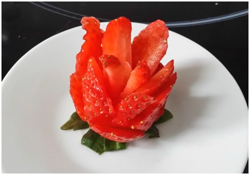 y cortar una lámina del exterior, continúa con el lado y corta otra lámina. Sigue haciendo láminas dando la vuelta a la fresa. Las láminas son las hojas de la rosa.