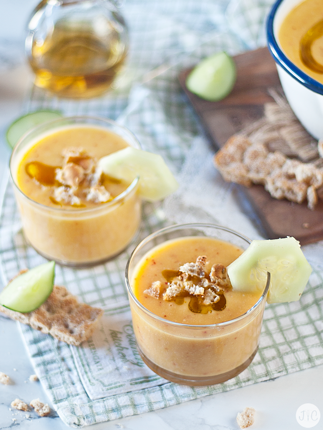 Esta receta me la ha pasado mi amiga Alicia Malo, que nos sorprendió en el trabajo con este gazpacho y cuando lo probamos todos nos quedamos con ganas de más. No me lo pensé y le pedí al receta, obviamente... ¡Y aquí está! ¡Gracias Alicia! Es uno de los descubrimientos del verano porque es una receta muy sencilla, que no necesita muchos ingredientes y que se hace en un momento. ¡Ya lo veréis!