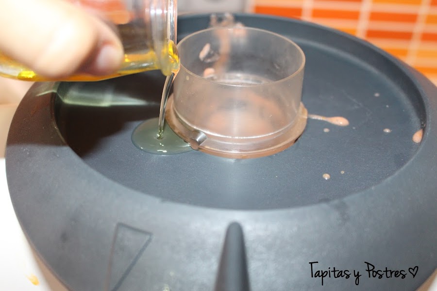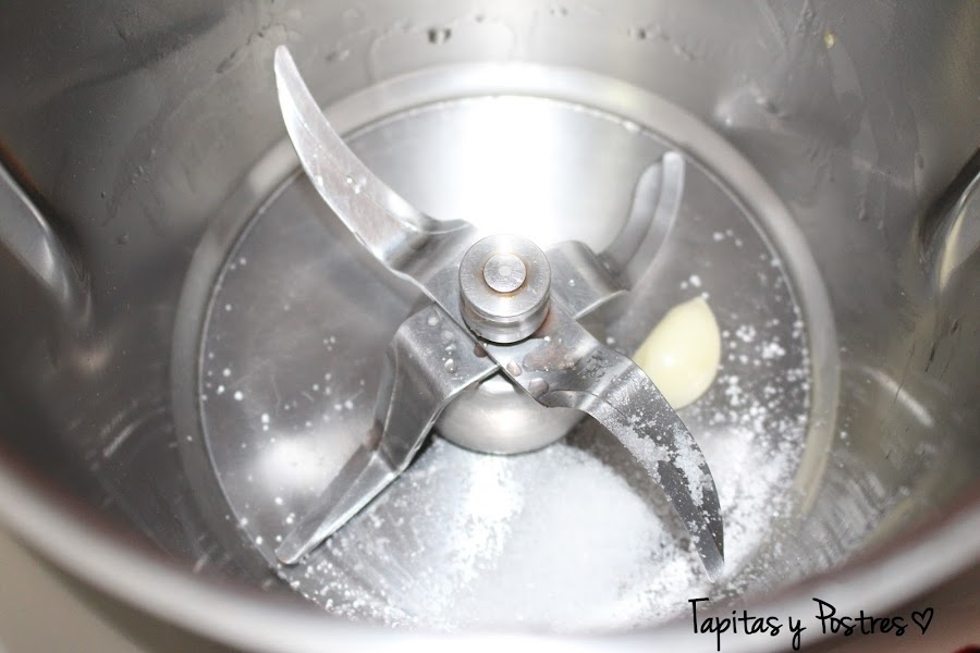 Añadimos el vinagre y mezclamos 15 segundos a velocidad 5. Probamos si está a gusto nuestro de sal y si no rectificamos.