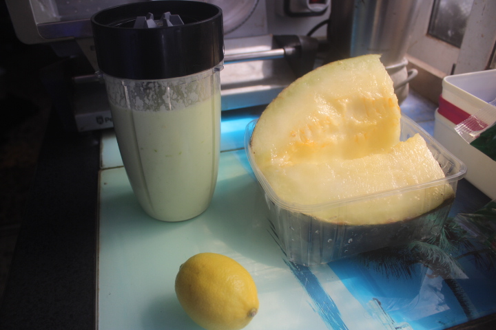 Troceamos a daditos dos rajas de melón y los introducimos en el vaso batidor.
