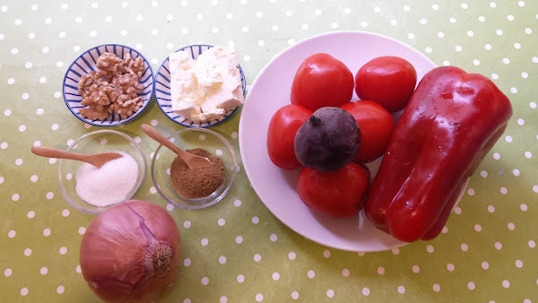Gazpacho de remolacha con queso feta, comino y nueces, ingredientes: