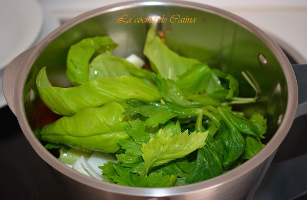 6 tallos de apio (las partes blancas y hojas)