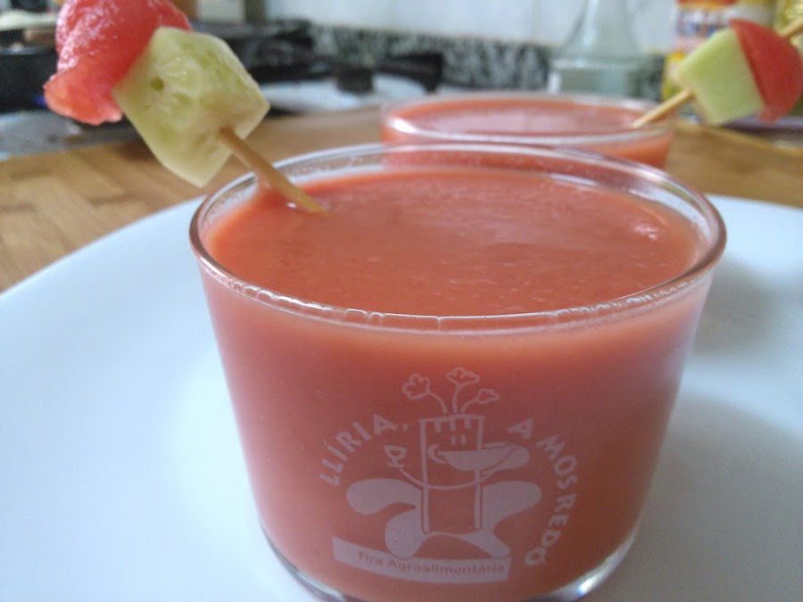 Y listo, como veis es súper fácil y fresquito es como mejor está. Sin la sandía haríamos un gazpacho andaluz al que le añadiríamos una rebanada de pan mojada en agua. Así que haced la versión que más os guste!! Un saludo y hasta otra.