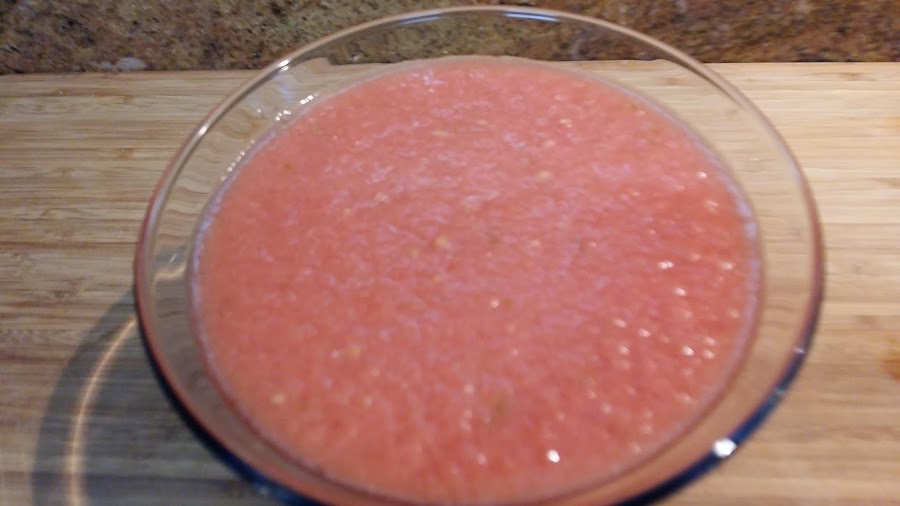 Hola holaaa!!! Como aún hace calorcito, que os parece un gazpacho? Pero este no es cualquier gazpacho, está hecho con sandía. Muy rico y si has comprado una sandía que no está muy dulce ya sabes con que usarla. aunque yo he hecho la receta solo para dos, os pongo los ingredientes para 4 personas. Espero que os guste.